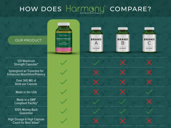 HarmonyVeda Shatavari is available in capsules. Adults may take 1–2 capsules daily with water, preferably after meals or as directed by a healthcare professional.